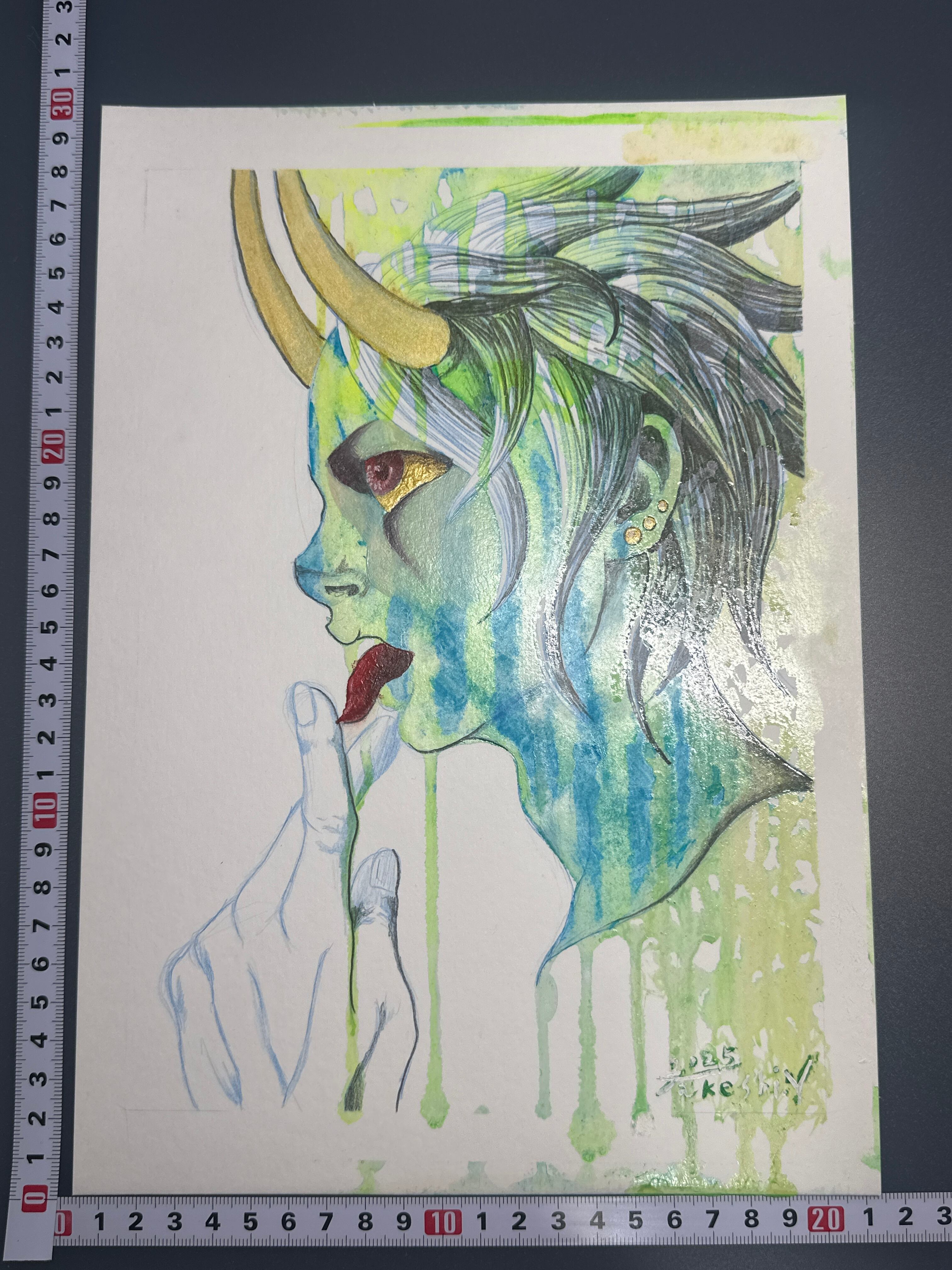 シャーペン 油絵具 紙