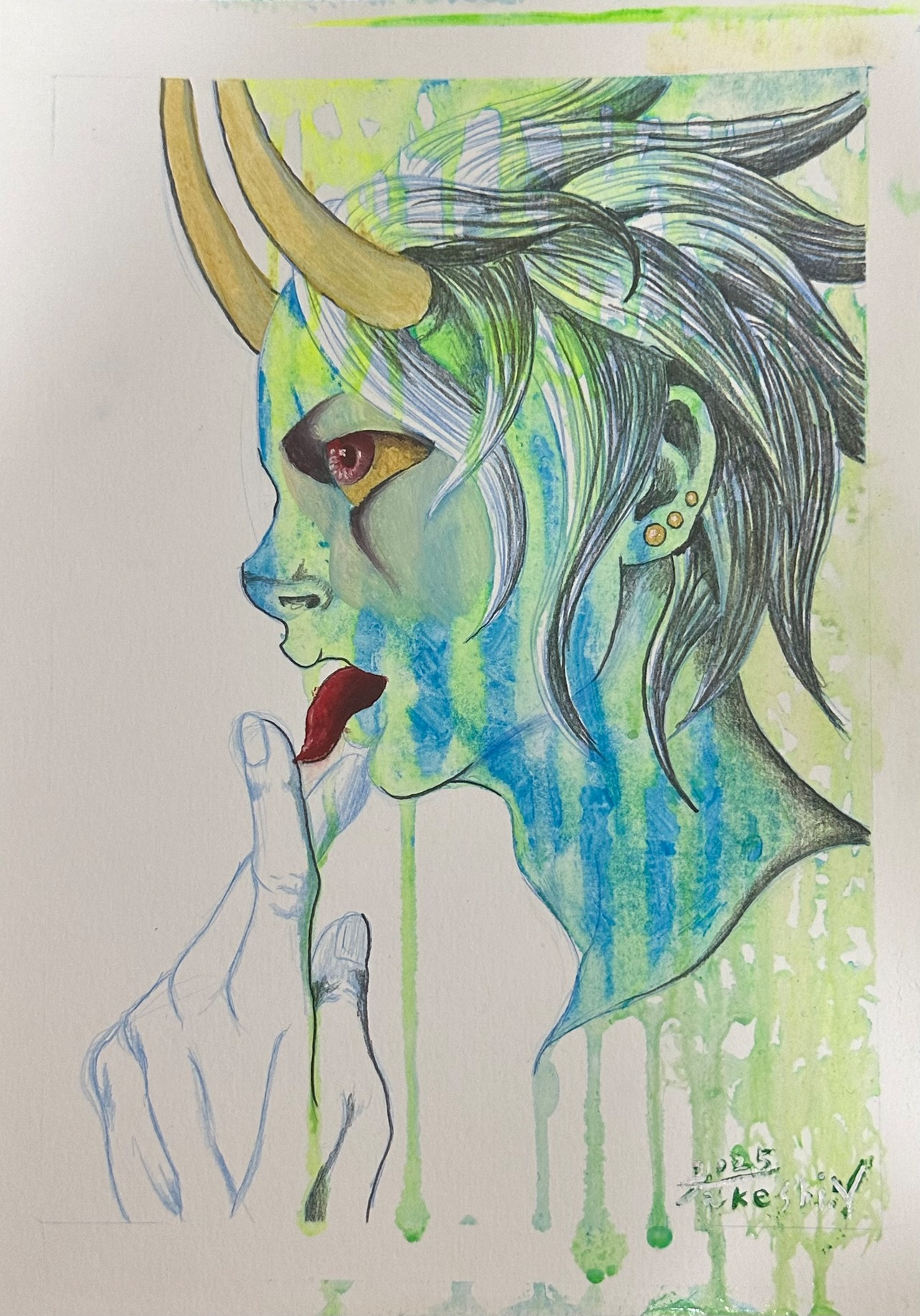 サイズA4(210×297mm) シャーペン 油絵具 紙 クリアファイルに挟んで送るので、作品がくっついている場合はゆっくり剥がしてください。