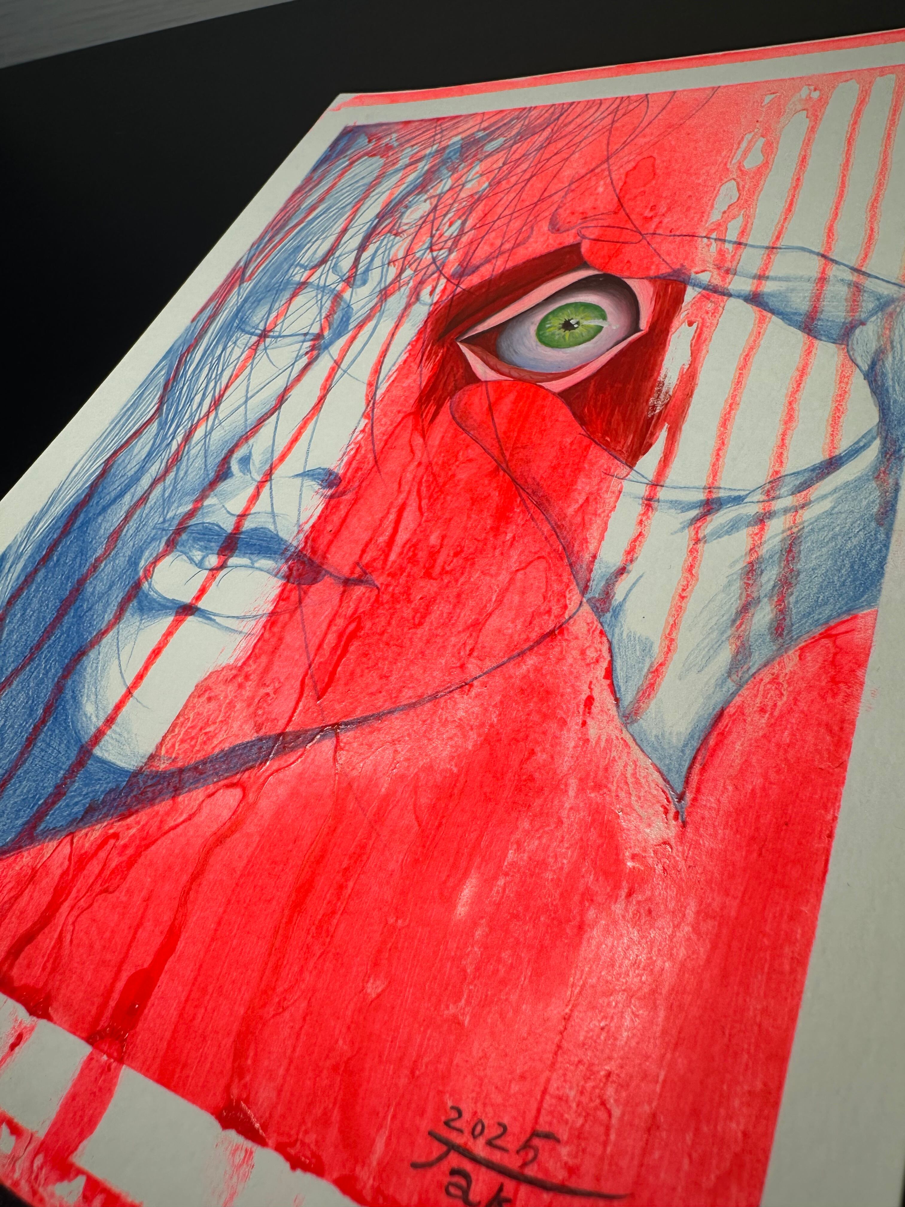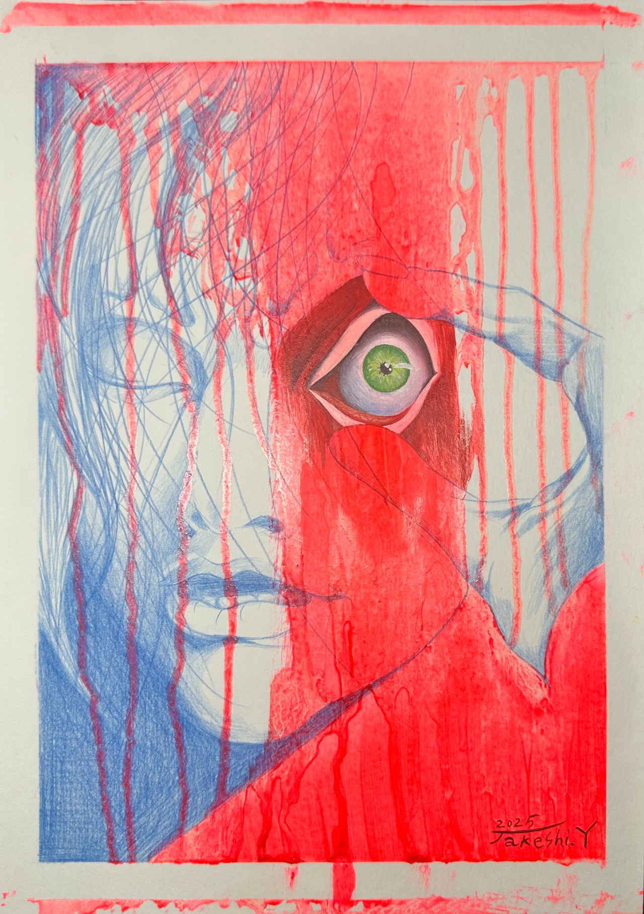 サイズA4(210×297mm) シャーペン 油絵具 紙 クリアファイルに挟んで送るので、作品がくっついている場合はゆっくり剥がしてください。
