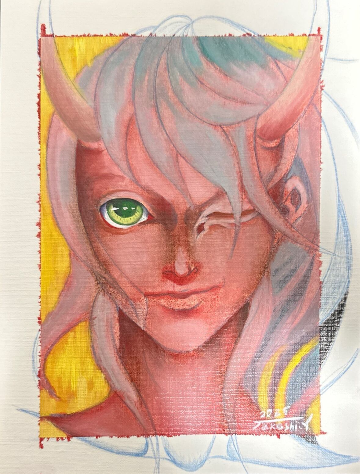サイズ(180×240mm) シャーペン 油絵具 紙 クリアファイルに挟んで送るので、作品がくっついている場合はゆっくり剥がしてください。