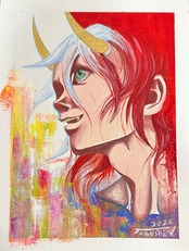 サイズ(180×240mm) シャーペン 油絵具 紙 クリアファイルに挟んで送るので、作品がくっついている場合はゆっくり剥がしてください。