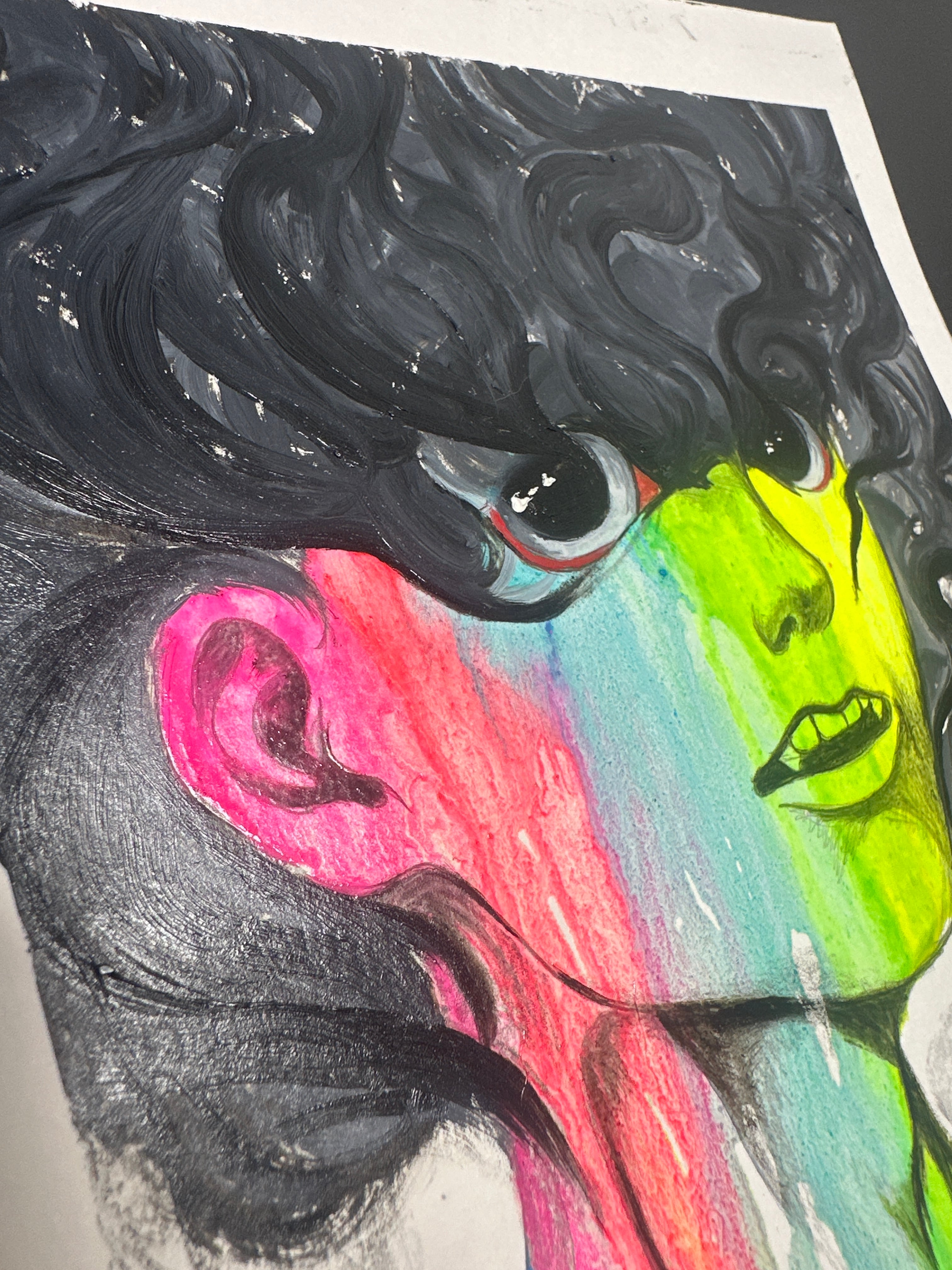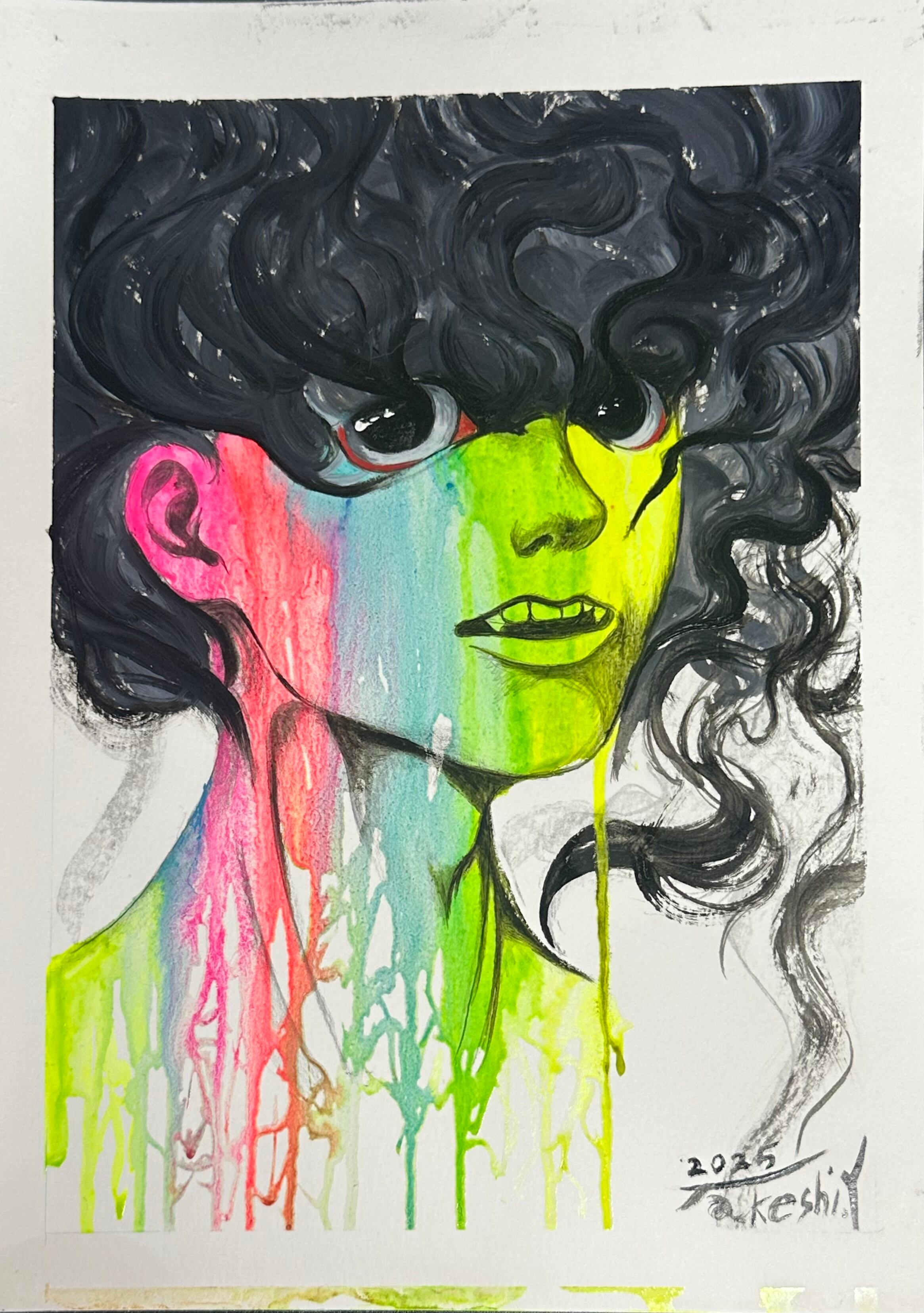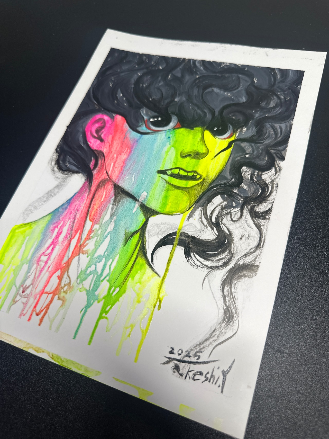 A4(210×297mm) シャーペン 油絵具 紙 クリアファイルに挟んで送るので、作品がくっついている場合はゆっくり剥がしてください。